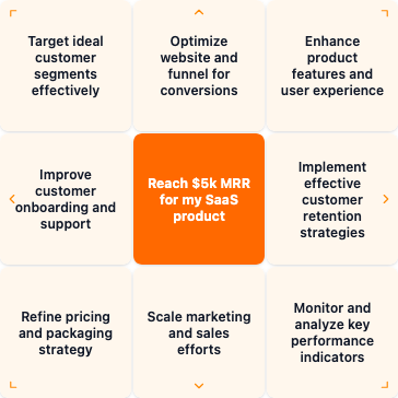 - Every cell represents a concrete step. No vague aspirations—just specific, measurable actions that compound into meaningful progress toward your goal.