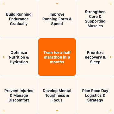 - Every cell represents a concrete step. No vague aspirations—just specific, measurable actions that compound into meaningful progress toward your goal.